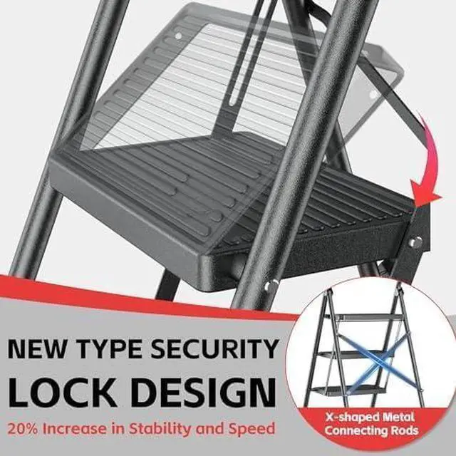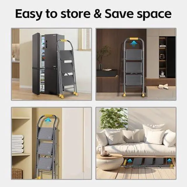Ultra-Portable and Space-Efficient Design - Folding down to an astonishingly slim profile of just 2.95", our step stool ladders are the perfect space-savers for your home. Ideal for storage in closets, under beds, or behind doors, our fully assembled ladders are ready to use out of the box, saving you time and effort. This makes them the ultimate foldable step stool and ladder for home use.