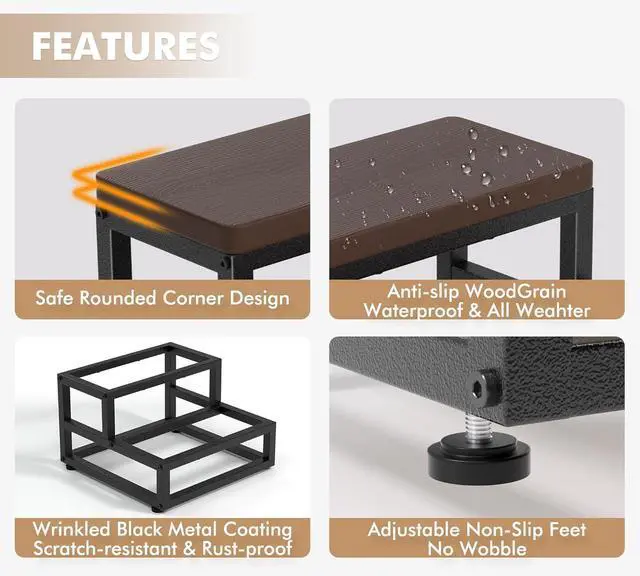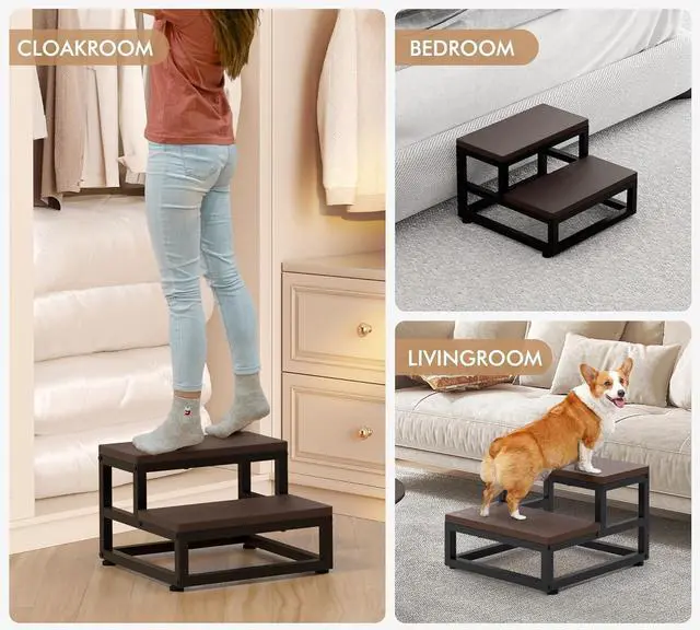Versatile UsesThe step footstool is great for the kitchen, bathroom, bedroom, office, garden, porch, camping, fishing, etc. Whether you need a kitchen step stool, a bathroom helper, or a bed or closet step, this multi-purpose stool has you covered