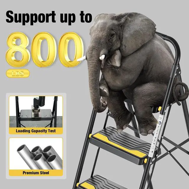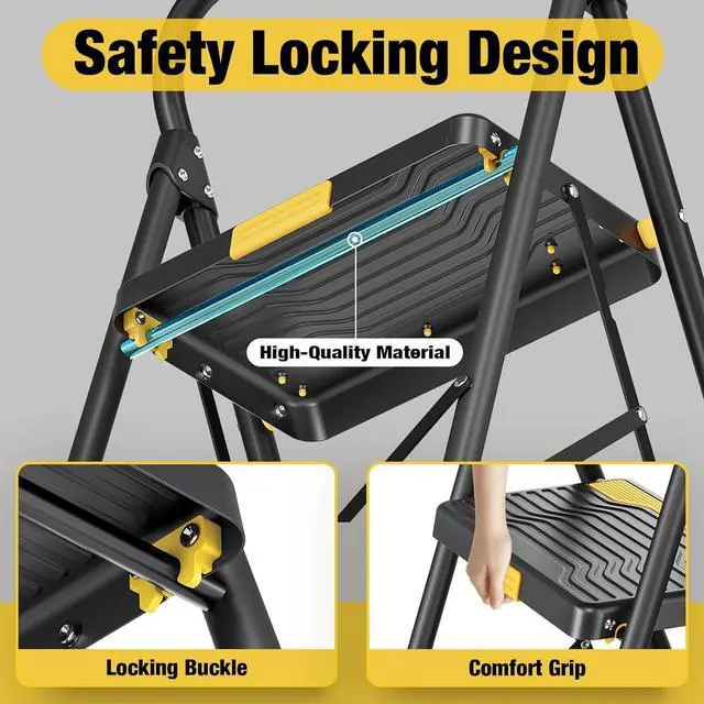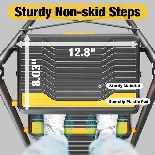 Wide Anti-Slip Steps: Extra-large treads with textured surfaces enhance stability and secure footing during indoor and outdoor projects