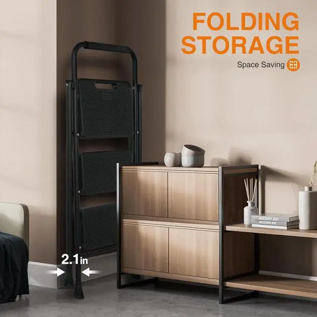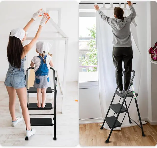 Multi-use LadderThis 3 steps ladder can be used in various scenarios, whether at home or in the outdoor. Making it the perfect addition to your home, Closet, Garage, Library, or Workplace