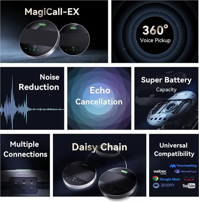 Universal Compatibility and Software SupportThe effective speaker and microphone is compatible with multiple platforms and applications such as Zoom, WebEx, Goto Meeting, Google Hangout, Facetime, Teams, BlueJeans, OBS and more. Lightweight and easy to carry, you can connect it to conference calls anytime and anywhere. You can also use it for YouTube Video, live streaming, conferences, telemedicine, online education, home office, seminars, remote training, business, video chats, etc.