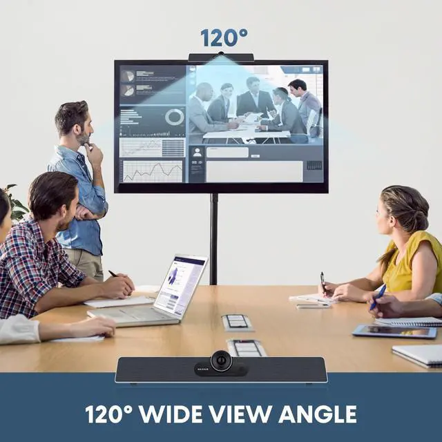 -: Enther conference room webcam captures clear, high-quality sound for meeting room with its 6-microphone array, ensuring all voices are heard clearly from up to 8 meters away. Featuring 8W high-fidelity speakers for rich stereo sound and powerful amplification. Plus, enjoy faster, more stable conference call with dual-band wireless connectivity ( 2.4 GHz / 5 GHz), ensuring seamless meeting with reduced interference and stable coverage for extended range