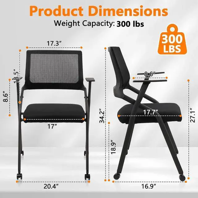 360 ° Rotating WheelThe 360° rotating wheels move smoothly on all floor types without causing damage. With simple installation and start using your mesh stackable chair.