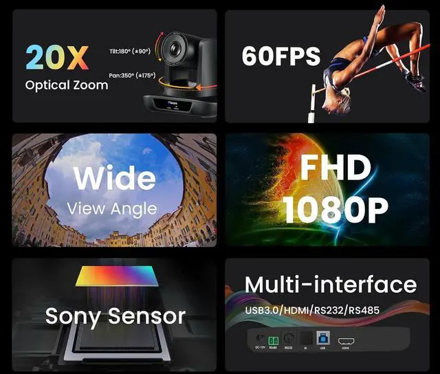 USB 3.0 Plug and Play, easy to connect, no additional drivers required. USB and HDMI outputs to connect to laptops, desktops, PCs, smart TVs, big screens, projectors, etc. With built-in OSD menu, you can easily set up the screen you want. The PTZ camera can be connected to the controller via RS485/232, but the serial protocol control features are limited and only partially compatible with the controller.: -.