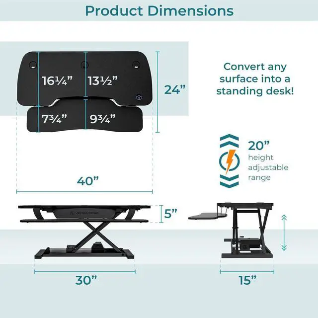 READY TO USE - The desk riser ships fully assembled; attach the keyboard in less than 5 minutes and it is ready to go! Place the VERSADESK PowerPro Desk Converter on top of your table, desk or workspace.