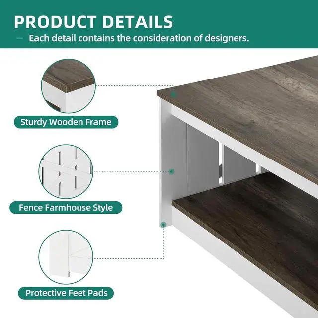 Clean: The storage coffee table has a waterproof and scratch-proof wood top, more durable than regular rectangular coffee tables. The easy-to-clean tabletop only needs you to wipe with a dry cloth, reducing your tedious household chores