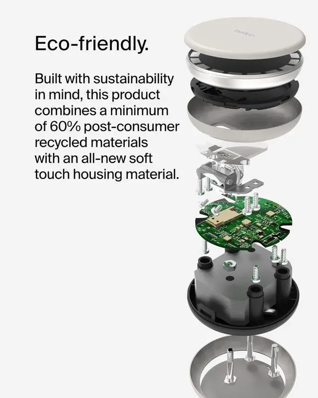 SUSTAINABLE: A non-slip weighted base ensures a sturdy home for all your devices. Built with sustainability in mind, this product combines a minimum of 60% post-consumer recycled materials with an all-new soft touch housing material.