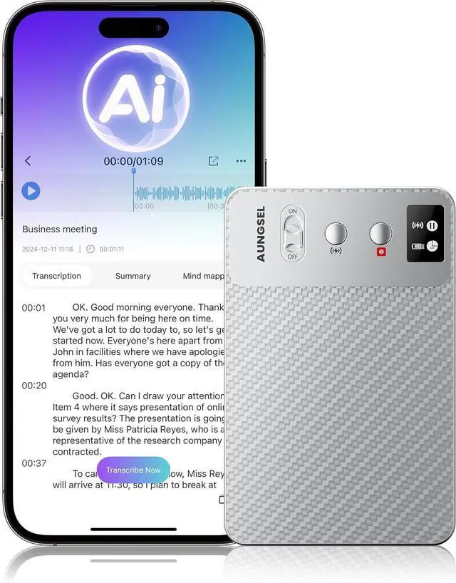 EASY TO USE: With a sleek, ultra-portable design ( 0.31" thickness, 0.17 lb weight), this voice recorder easily fits in your pocket or bag. One-button recording makes it simple to start or stop recording directly on the device or via the app, giving you a seamless user experience.