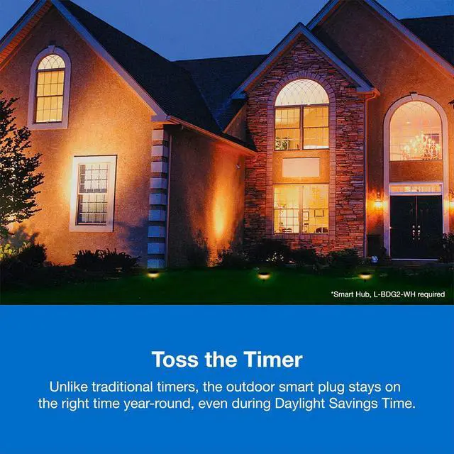 TOSS THE TIMER: Unlike traditional timers, the outdoor smart plug stays on the right time year-round, even as the seasons change and with Daylight Savings (Lutron Caseta Smart Hub required)