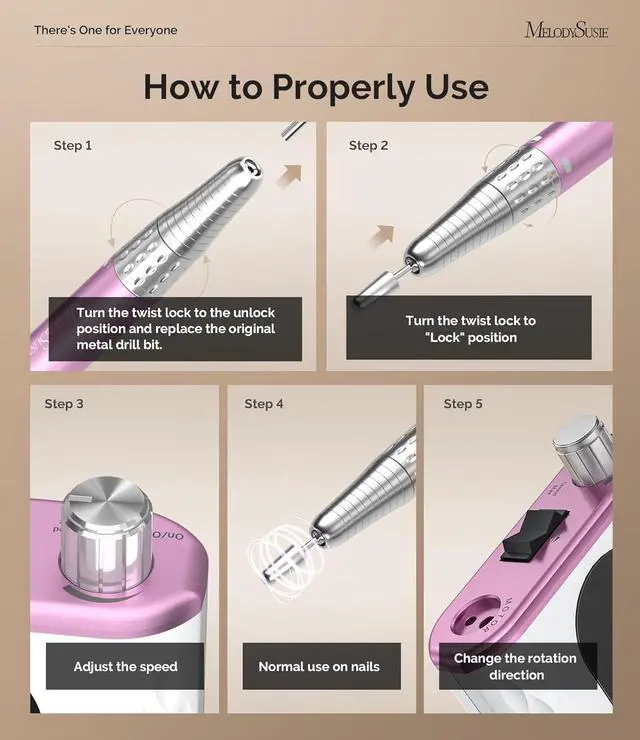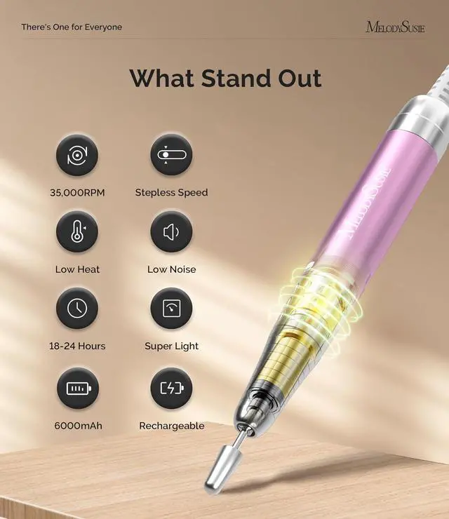 Elegant Design & Quality Assurance: The MM400D nail drill features MelodySusie's signature marquise diamond-cut texture in a stunning rose gold and white design, combining elegance with durability. Backed by reliable MelodySusie after-sales service, this electric nail drill ensures a worry-free purchase and long-lasting performance.