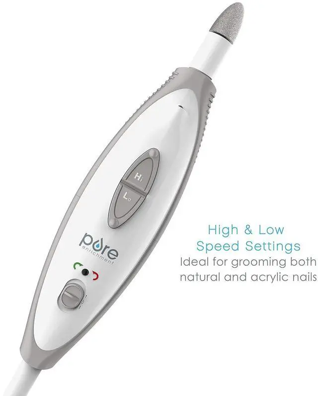 Spiral Spring AC Adapter: Long-reaching AC adapter powers the electric nail drill so you never need to buy batteries