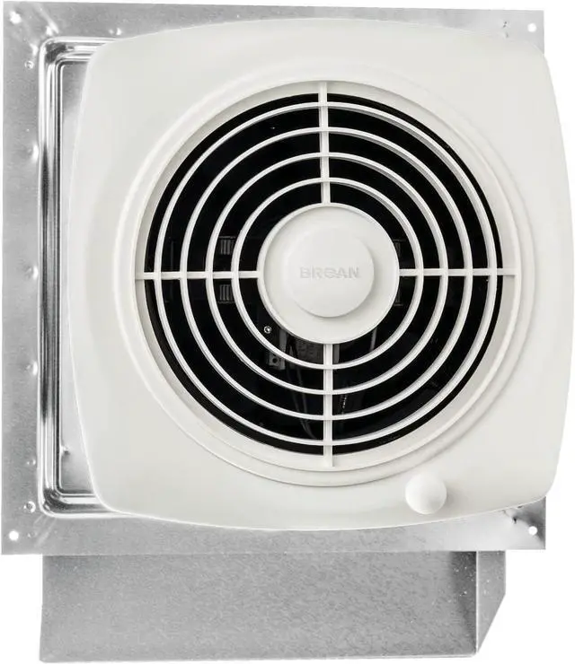 Say goodbye to unbearable heat and humidity in the garage, unwanted smells in the kitchen and odors in the laundry room, rec room or garage. The Broan 200 CFM Through-Wall Ventilation Fan is the perfect solution for rooms up to 195 sq. ft, including one car garages, or use for spot ventilation near areas such as a work bench, garbage can, car, or lawn mower. The durable galvanized steel housing provides superior protection against the elements and wear and tear. It features a built-in exterior wall cap/vent which reduces install time, no duct work needed. The fan cover has an integrated on/off switch dial preventing the need for wiring a wall switch.. com