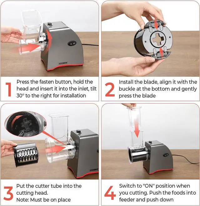 Easy To Clean: All parts of electric cheese grater is detachable, the base of cheese grater only needs to be wiped down with a damp cloth and can't placed in water, other parts just wash it under a stream of water for a few seconds, no annoying cleaning steps