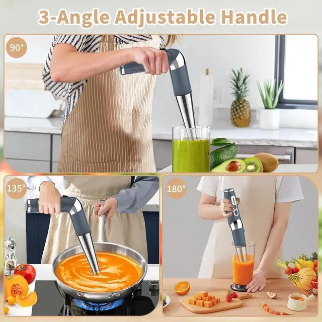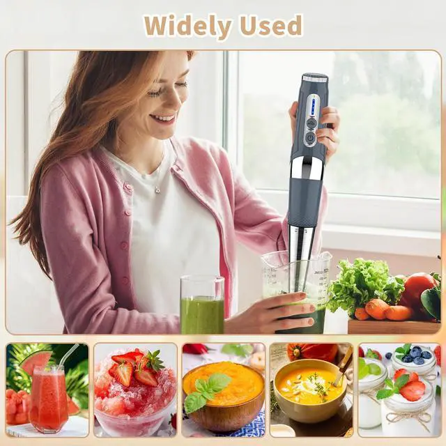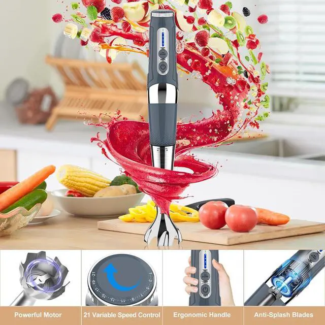 Powerful & Variable 21-Speeds: Equipped with a powerful high-speed motor and variable speed control technology, the stick blender quickly and seamlessly blends ingredients together to make delicious and healthy smoothies, shakes, purees, soups, marinades, sauces, juices, and much more. Give you a great power and flexibility to control the speed to suit different ingredients.