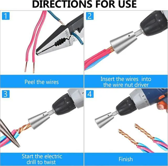 Wire Twisting Tool: Pair this wire stripper for drills with a handheld electric drill or other power tools for swift and efficient wire stripping. Wirenut twister is an essential piece of equipment and an excellent choice for electricians. This electrician wire twisting is invaluable for tasks ranging from automotive repairs to household wiring. It is perfect for use in workshops, garages, and construction sites, offering both convenience and reliability across diverse applications.