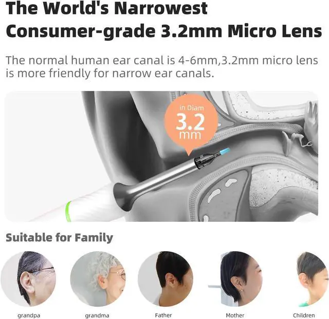 Ear Spoons: 3- color ear tips replacement configurations can make family members feel at ease to use to avoid cross-infection. The configuration of the ear spoon enables this product to realize the 3-in-1 function of an endoscope, tweezers, and ear spoon. Food-grade silicone ear spoons are comfortable and soft, protecting our fragile ear canal. You can not only check and clean the ear canal but also check the mouth, nasal cavity, and skin.