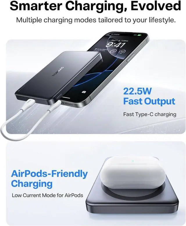 Super Fast ChargingTired of waiting for your power bank to charge? This power bank fast charging supports 22.5W wired fast charging and 15W wireless fast charging( 7.5W wireless charging for iPhone), ensuring your devices can be charged quickly and efficiently. Whether you're on a long trip, a business trip, or away from a power source for extended periods, you never have to worry about running out of battery again.