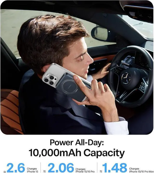 Compact & Portable, Travel Worry-FreeAt just 0.62 inch and 7.0 oz, this phone battery pack fits easily in your pocket or bag. Its sleek, compact design provides 10, 000mAh power storage while maintaining a stylish look. Whether commuting, traveling, or out and about, this portable power bank meets all your needs. Equipped with advanced safety features including overcharge, over-discharge, and overheating protection, and certified for air travel, it's your reliable, go-anywhere power solution.