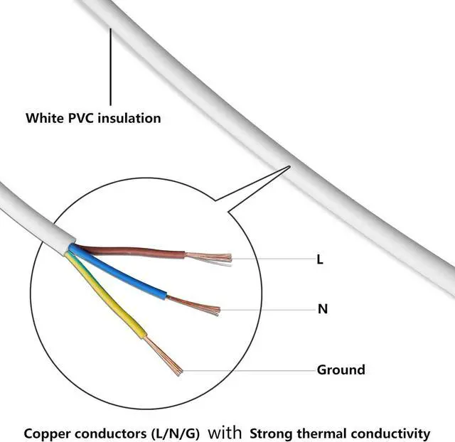 White PVC insulation Which against abrasion and moist,long service life up to 50.000hrs.Terminal: L/N/G .
