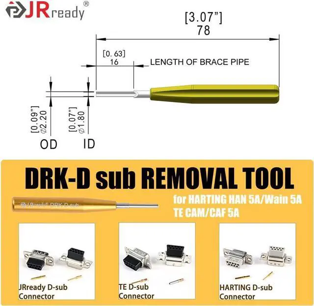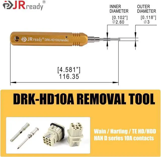 [DRK-HC40A (09990000305) HARTING Removal Tool] ID: 0.102 '', OD: 0.118 '', suitable for HAN E, HAN EE series Connector 40A Solid Contacts CCSM & CCSF.