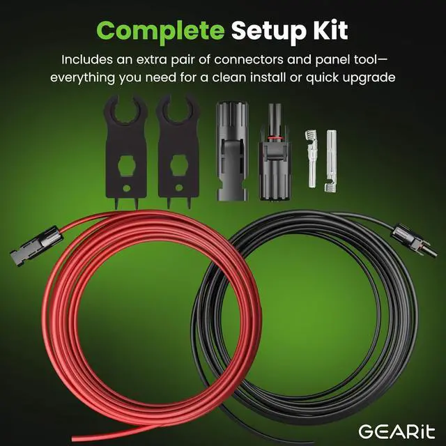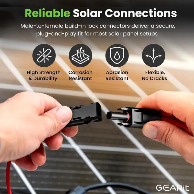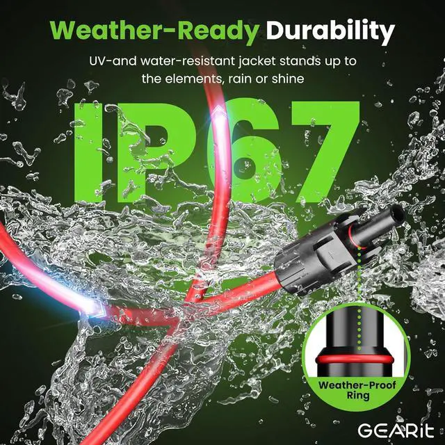 Durable: GearIT solar wiring cables feature IP67 waterproof connectors to withstand extreme cold and heat for water proof conditions. Suitable for use outdoors on your solar panel roof, boats, RVs, or auto vehicles that use solar panel power.