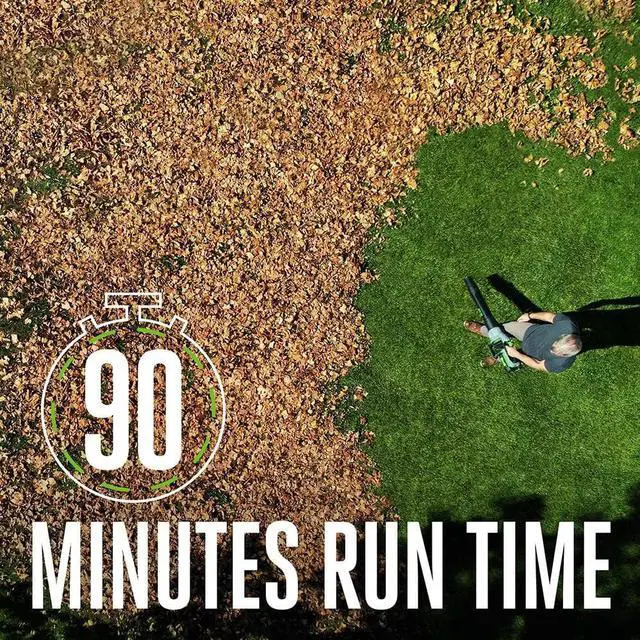 UP TO 90 MINUTES OF RUNTIME Get up to 90 minutes of average runtime from the leaf blower with the included 5.0Ah battery; compatible with all EGO 56V ARC Lithium batteries