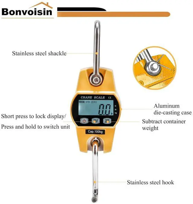 Multi-function-The digital hanging scale can switch unit from lb, N, kg. Auto-off and backlight time can be set accoring to your personal need.