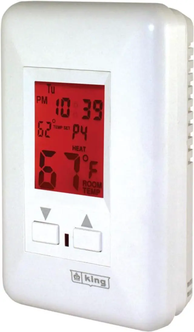 This line voltage thermostat is one of a kind in features and improved with memory backup for power outages. This thermostats supports all the features you want with only two buttons. - minimizing confusion and simplifying your climate. Two keys on the front control the temperature up and down. Illuminated LCD display creates for ease of use at night.