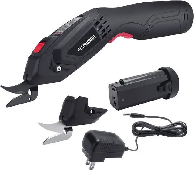 PACKAGE CONTENTS: 1 X electric scissor, 2 X high quality blades, 1 X charger cable, 2 X removable lithium battery can meet most of the cloth cutting in daily home projects.