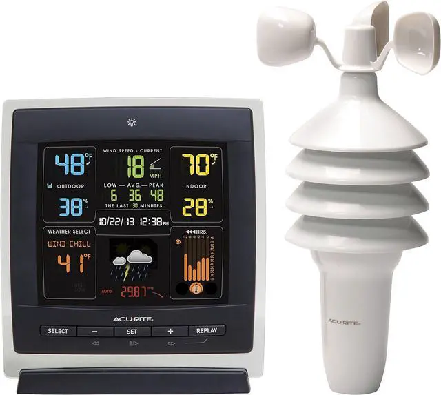 The patent-pending 3-in-1 sensor is easy to setup, includes mounting hardware and features a 2-year battery life for maintenance-free operation. Stay informed of the changing environmental conditions surrounding your home with the AcuRite Pro Color Weather Station with Wind Speed, Temperature and Humidity. It's more than accurate, it's AcuRite.