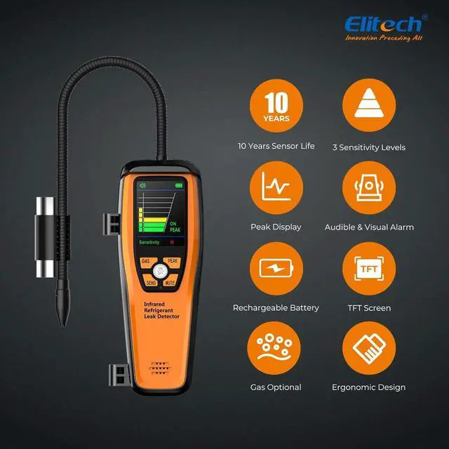 Detecting All Halogenated Gases: It can detect all kinds of halogen refrigerants including CFCs, HFCs, HCFCs, HCs, HFOs and mixed refrigerants such as R11/R22/R404a/R410a/R600a/R1234yf and Blends such as AZ-50, HP62, MP39 etc. and response within 1s. We offer 7*24 services and a one-year warranty for the gas leak detector.