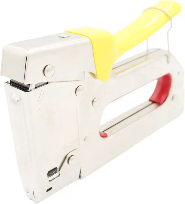 ERGONOMIC DESIGN: Features a comfortable yellow grip handle and durable metal construction for efficient stapling operation