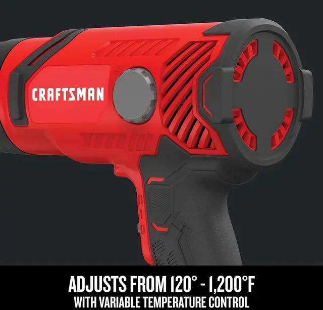 Power up the heat with this Corded Heat Gun. The variable temperature control dial allows for easy heat adjustment from 120-degree Fahrenheit to 1200-degree Fahrenheit so you can complete the task at hand. With the convenience of the two fan speeds and integrated support stand, you will have control over your heating projects from the optimal air flow to the upright standing position.