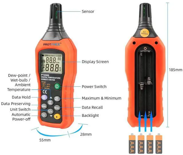 Multiple functions: With data retention, data storage, unit conversion, backlight, low battery indicator, automatic shutdown, and maximum and minimum functions.