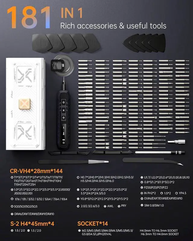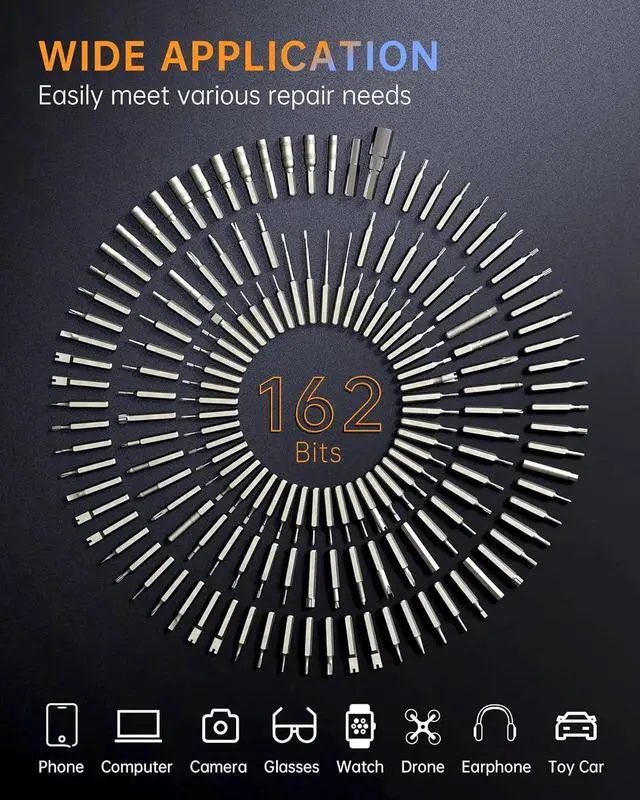 What You Get & Satisfied Warranty This power magnetic cordless screwdriver kit includes 162 * S2 steel magnetic precision specialty bits, 16 repaire tools, 1 * electric screwdriver handle, 1 * magnetizer Case, 1 * Type-C charging cable, 1 * user manual. No matter any issues with TAAHIRA tools, our customer support team is available via email to assist you.