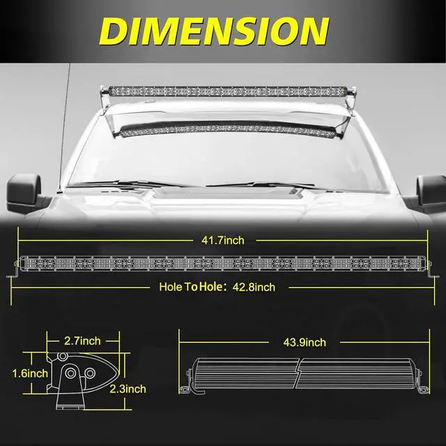 PACKAGE INCLUDING - Box comes with 42 Inch Slim LED Light Bar + Stainless Steel Adjustable Mounting Brackets + Necessary Screw Set (DO NOT come with wiring harness). For any inquiries or assistance, AKD Part team is available 24/7 for prompt online support.