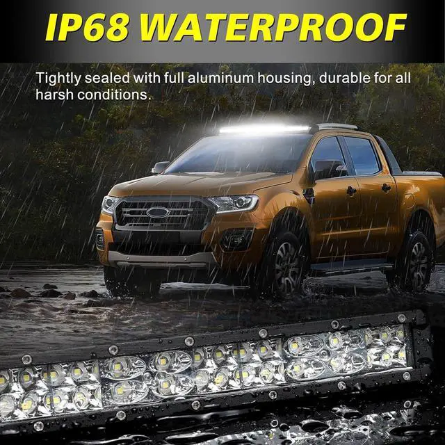 WORTH EVERY PENNY - Extremely durable die-cast aluminum housing, unbreakable Polycarbonate lenses and stainless steel adjustable mounting bracket, the 42 inch light bar is IP68 waterproof & shockproof & dustproof, durable to withstand any harsh condition. Boasting a potential lifespan of over 50, 000 hours, the slim LED light bar is your steadfast companion for endless adventures.