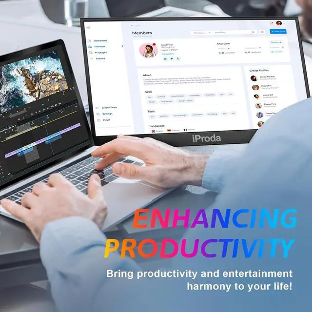 : This travel monitor gives you an extra monitor for multitasking. You can open several different windows at the same time, making multi-tasking way easier and more organized. Perfect for doing work with graphics and other work related productivity.