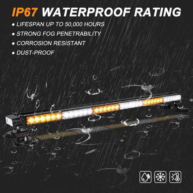 High-Power: 1W / LED Working at DC12-24V. This rooftop strobe light bar is a great choice for firefighter, snow plowing, safety warning, emergency vehicles, utility workers, postal service, construction vehicle, etc.