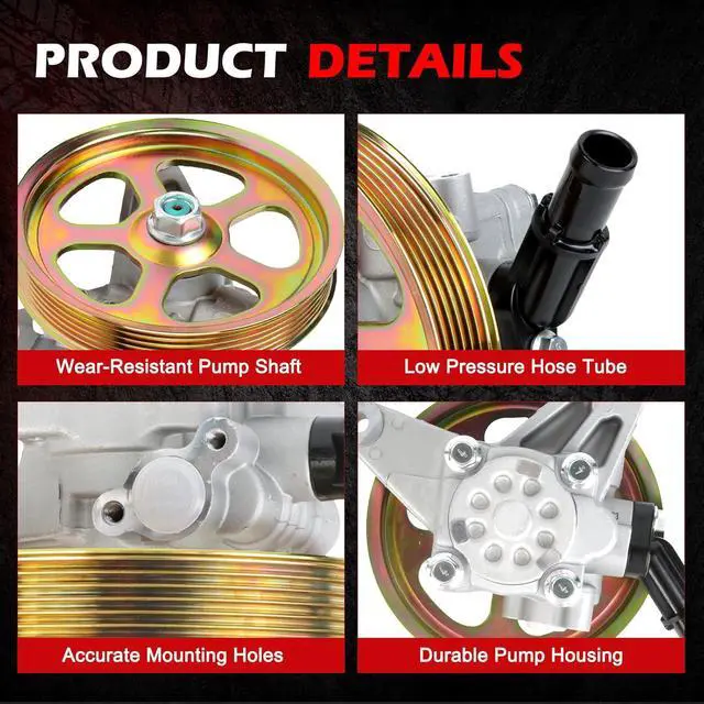 Product FunctionOur power steering pump makes it easier to turn the wheel, boosting your vehicle's steering control while also improving stability and maneuverability. This helps reduce fatigue during long drives, giving you a smoother and more comfortable ride.
