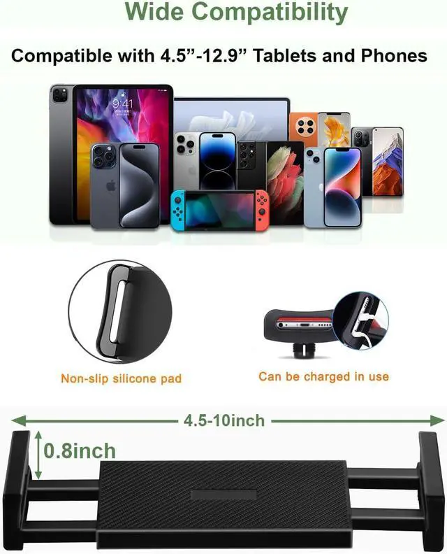 Widely CompatibilityOur tablet chuck fits all phones and all tablets from 4.5 to 12.9 inches, including new 2024 / 2022 / 2021 iPad Pro 11/ 12.9 inch, iPad 10.9, iPad Air 6 / 5, iPad Mini 6/ 5/ 4/ 3, iPad Pro 9.7 / 10.5, 2020 iPad Pro, iPad 5th/ 6th/ 7th/ 8th/ 9th/ 10th generation, Kindle Fire HD 7 8 10, E-reader, iPhone 15 Pro Max, iPhone 14 Pro Max, 13 Pro Max, 12 11 Pro Max, iPhone Xs Max, Surface Pro, Galaxy Tab S8, S7, A8, A7, Switch, Pixel, Nexus.