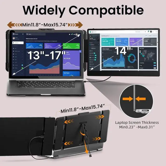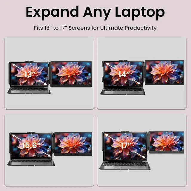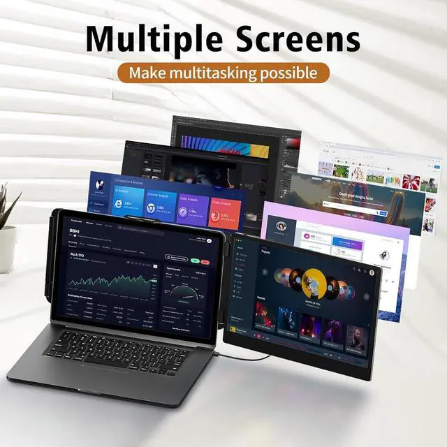 Efficiency increased by 200%: The extra screen for laptop supports expansion, mirror, and second screen modes. Ideal for presentations and multitasking, it lets you open multiple windows across screens for work, video calls, or entertainmenteliminating constant switching. Boost efficiency by up to 200%, it's perfect for people working on the go, gamers, finance and investment professionals, designers, and anyone who needs a more efficient workflow.