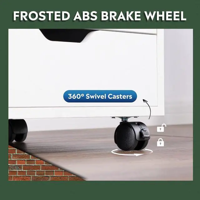 EASY TO MOVE: Rolling on four wheels, this printer stand can be moved and adjusted in position freely. Built-in brakes on front two casters to keep it in position and add stability.