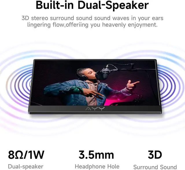 Dual Speakers: Customize your workspace. The built-in standard 75x75mm VESA mount allows you to securely install it on a wall or monitor arm to save desk space. Enjoy immersive sound with dual built-in speakers(1W*2 (8) ) or connect your own audio via the 3.5 mm jack.