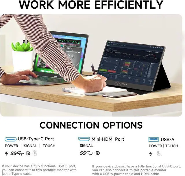 Supercharge Your Productivity & Entertainment: Go beyond mirroring. Extend your desktop for multitasking, duplicate for presentations, to code, read PDFs and browse social media with ease. This portable monitor with 170° ultra-wide viewing angles, the picture remains clear from virtually any position. Seamlessly switch from a powerful dual-screen work setup to an immersive gaming or movie-watching experience