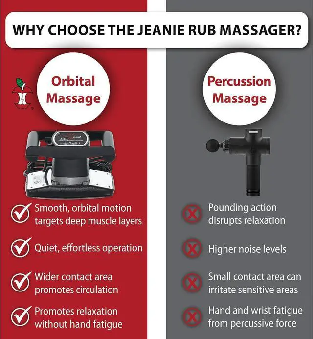 QUALITY AND PERFORMANCE: The Jeanie Rub Variable Speed Massager, proudly assembled in Wisconsin, USA, delivers deep tissue relief without causing hand fatigue, reducing muscle fatigue and sore muscle while boosting circulation for faster recovery - trusted by chiropractors, athletes, and therapists.