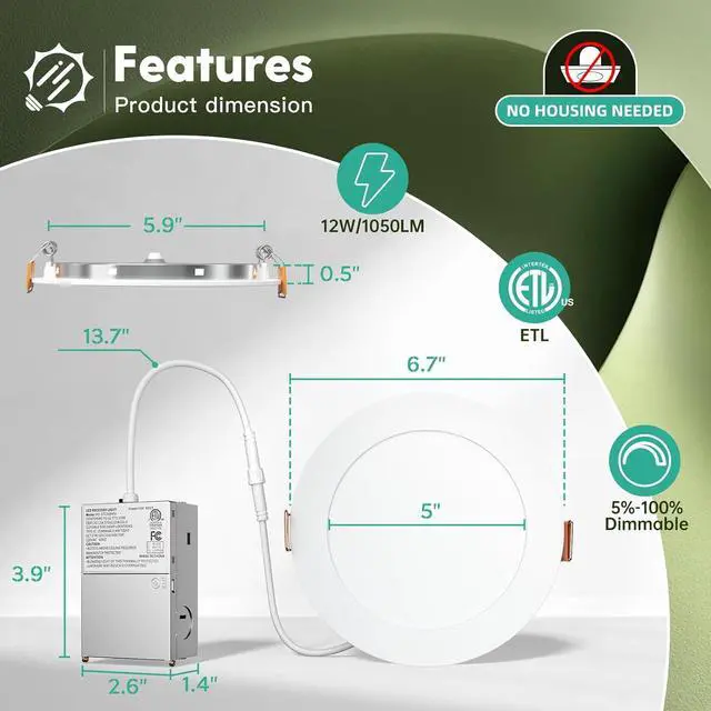 Wide Application: Ultra-thin body, 5%-100% smooth dimming, compatible with most dimmers, suitable damp location, meets kinds of needs in applications such as kitchen, living room, bedroom, bathroom, workplace, common areas, outside soffits and other hard to reach spaces.
