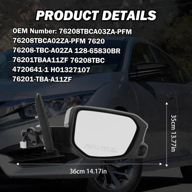 Check the part reference numbers to make sure it matches your car side mirror. Please contact us first for any question, we will reply you within 2 working days.