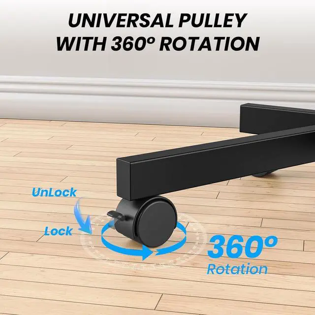 Effortless Mobility for Any Space: With its 360° rotating wheels, the Xyndyx rolling TV stand easily moves from room to room. Whether you need to switch between your living room, conference room, or classroom, this portable TV stand provides smooth, hassle-free transport. Its compact design allows it to be placed close to the wall, saving valuable space while providing an elegant solution for your entertainment and presentation needs.