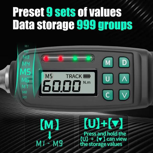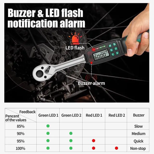 Any Environment: Progressive green-to-red LED sequence with aggressive audible buzzer provides crystal-clear real-time feedback as you approach target torque. Visual and audio alerts become constant and solid once target is reached, eliminating guesswork and preventing accidental over-tightening of sensitive components